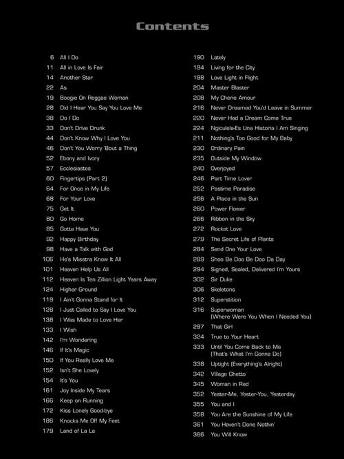 The Stevie Wonder AnthologyPublisher: Hal LeonardCategory: Keyboard & Piano/Vocal/GuitarSeries: Piano/Vocal/Guitar Artist SongbookFormat: PaperbackA must for every Wonder fan, this is a comprehensive collection of 75 gems from 1963 to 1998. Includes: Boogie On Reggae Woman ·...Regular price $59.99 -
