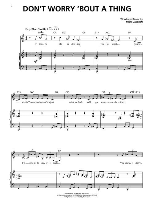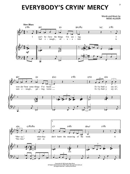 Best of Mose AllisonPublisher: Hal LeonardCategory: Keyboard & Piano/Vocal/GuitarSeries: Vocal PianoFormat: Softcover15 favorites from this Mississippi blues/jazz musician in vocal/piano arrangements: Don't Worry About a Thing · Everybody's Cryin' Mercy · Eyesight to the Blind ·...Regular price $20.99 -