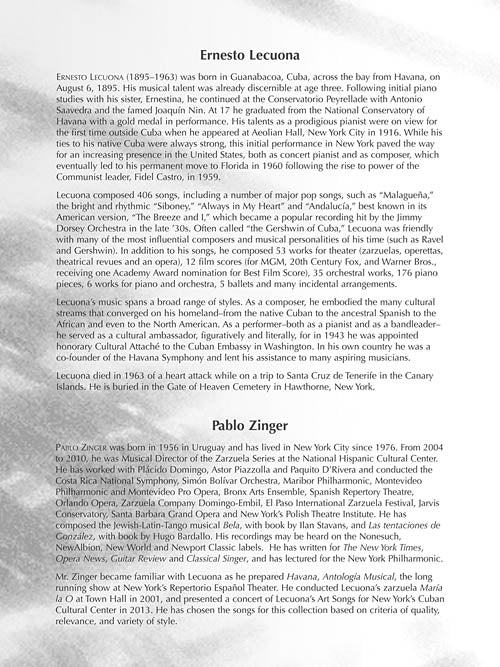 Songs of Ernesto Lecuona33 Songs for Voice and PianoPublisher: Edward B. Marks Music CompanyCategory: VocalSeries: E.B. MarksFormat: Softcover33 songs from all periods and styles of Lecuona's prolific output, including corrected versions of long-out-of-print classics and several...Regular price $27.99