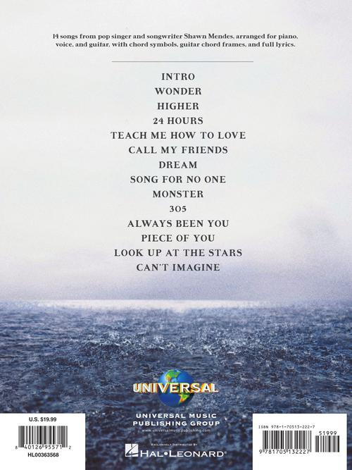 Shawn Mendes - WonderPublisher: Hal LeonardCategory: Keyboard & Piano/Vocal/GuitarSeries: Piano/Vocal/Guitar Artist SongbookFormat: Softcover14 songs from the fourth studio album by Canadian pop superstar Shawn Mendes, which debuted at the top of the Billboard® 200 album charts....Regular price $23.99 -
