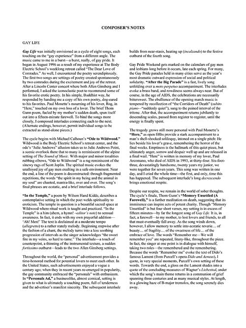 Composer: David Del TrediciSongs for Baritone and PianoPublisher: Boosey & HawkesCategory: VocalSeries: Boosey & Hawkes VoiceFormat: PaperbackIncludes the Gay Life, a cycle of 6 songs with words by various writers, including Allen Ginsberg and Paul Monette,...Regular price $23.99 -