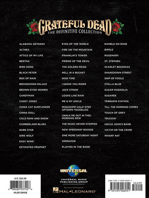 Grateful Dead - The Definitive CollectionPublisher: Hal LeonardCategory: Keyboard & Piano/Vocal/GuitarSeries: Piano/Vocal/Guitar Artist SongbookFormat: SoftcoverDead heads will love this newly-engraved collection of 54 songs from the iconic jam band. Songs include: Althea · Bertha · Box...Regular price $53.99 -