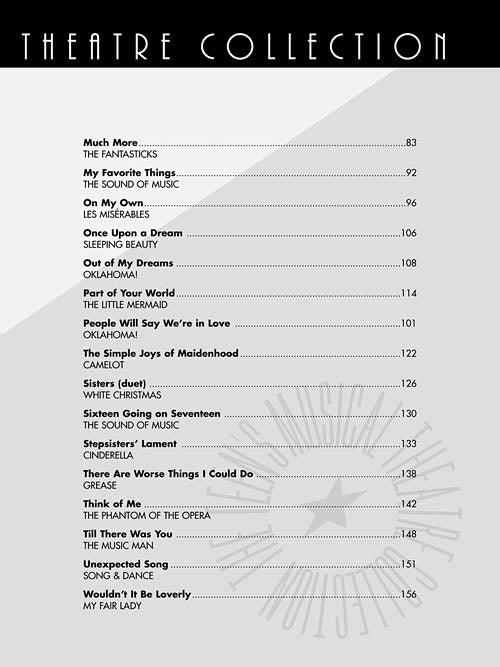 Arranger: Louise LerchThe Teen's Musical Theatre CollectionYoung Women's EditionPublisher: Hal LeonardCategory: VocalSeries: Vocal CollectionFormat: SoftcoverThis publication is a hit! With 33 great songs from stage and movie musicals - plus plot notes for each - this...Regular price $23.99