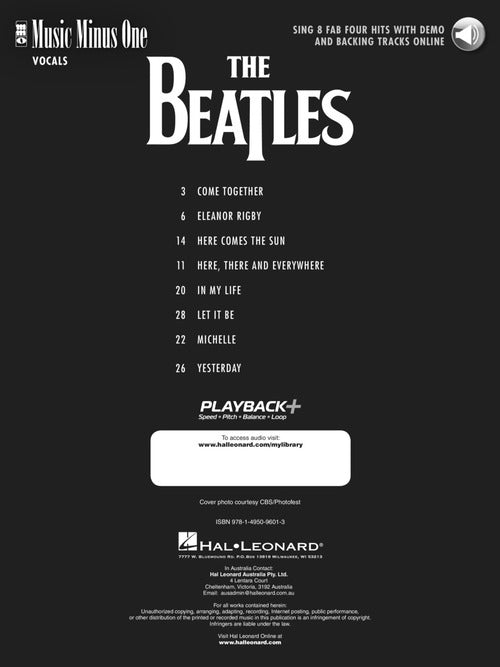 The Beatles - Sing 8 Fab Four Hits with Demo and Backing Tracks OnlineMusic Minus One VocalsPublisher: Music Minus OneCategory: VocalSeries: Music Minus OneFormat: Softcover Audio OnlineAll that's missing are your vocals! 8 timeless hits by...Regular price $23.99 -