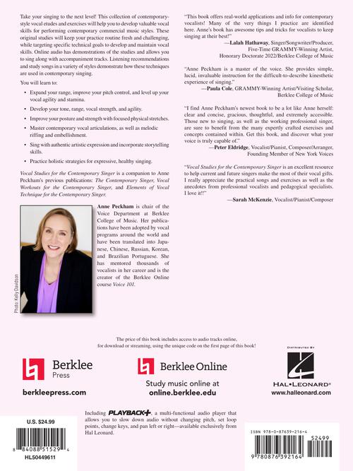Vocal Studies for the Contemporary SingerPublisher: Berklee PressCategory: VocalSeries: Berklee GuideFormat: Softcover Audio OnlineTake your singing to the next level! This collection of contemporary-style vocal etudes and exercises will help you to develop valuable vocal skills...Regular price $29.99 -