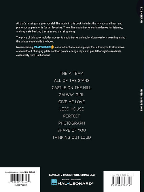 Ed Sheeran Music Minus One Vocals 10 Favorites with Sound-Alike Demo & Backing T