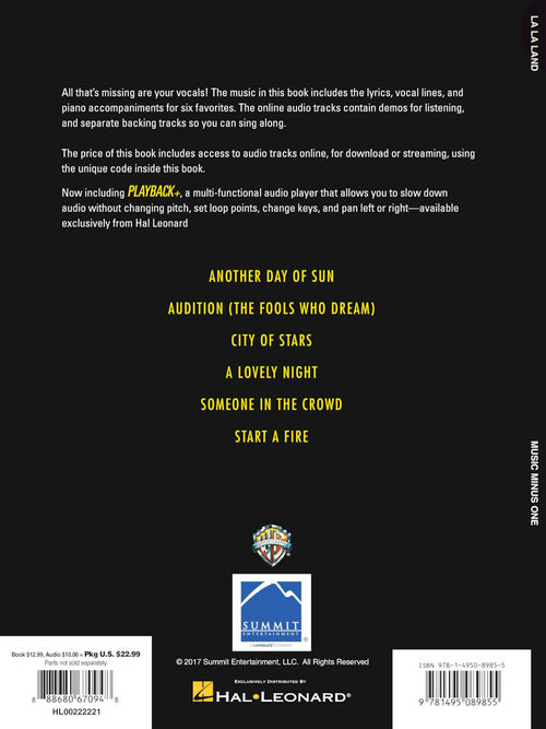 La La Land - 6 Selections from the Hit MovieMusic Minus One VocalsPublisher: Music Minus OneCategory: VocalSeries: Music Minus OneFormat: Softcover Audio Online6 selections from the Academy Award-winning movie musical are presented in this book which...Regular price $27.99 -