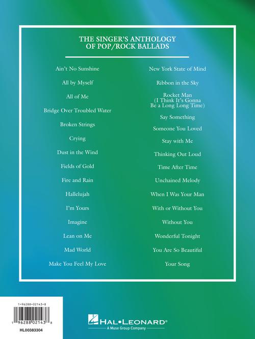 The Singer's Anthology of Pop/Rock BalladsTenor/Baritone EditionPublisher: Hal LeonardCategory: VocalSeries: Vocal CollectionFormat: SoftcoverDo you need a perfect contemporary song for a vocal audition or performance? The Singer's Anthology of Pop/Rock Ballads gives you over 30 pop/rock...Regular price $35.99