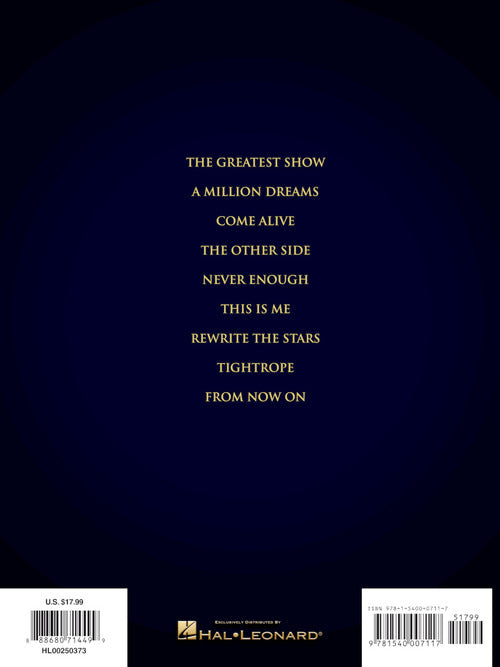 The Greatest ShowmanMusic from the Motion Picture SoundtrackPublisher: Hal LeonardCategory: Keyboard & Piano/Vocal/GuitarSeries: Piano/Vocal/Guitar SongbookFormat: SoftcoverA musical drama biopic chronicling P.T. Barnum (played by Hugh Jackman) and his founding of the Barnum & Bailey Circus, this...Regular price $29.99 -