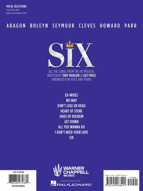 Composer: Lucy MossSix: The MusicalVocal SelectionsPublisher: Hal LeonardCategory: Keyboard & Piano/Vocal/GuitarSeries: Vocal SelectionsFormat: SoftcoverSix has received rave reviews around the world for its modern take on the stories of the six wives of Henry VIII! From...Regular price $31.99 -