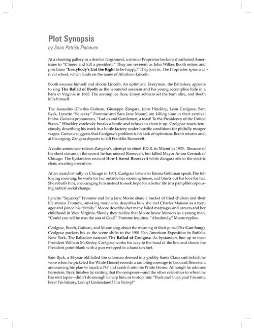 Composer: Stephen SondheimStephen Sondheim - AssassinsVocal SelectionsPublisher: Hal LeonardCategory: Keyboard & Piano/Vocal/GuitarSeries: Vocal SelectionsFormat: SoftcoverThis musical, with a book by John Weidman, explores the history of presidential assassination in America, from John Wilkes Booth to John...Regular price $35.99 -