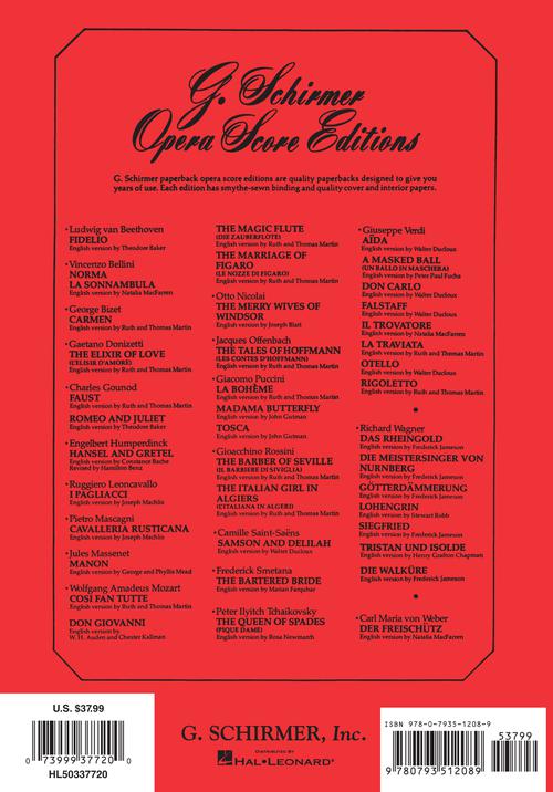 The Marriage of Figaro (Le Nozze di Figaro)Vocal ScorePublisher: G. Schirmer, Inc.Category: ClassicalSeries: Vocal ScoreFormat: SoftcoverItalian/English. Translated by Martin.Inventory # : 50337720UPC: 73999377200ISBN: 793512085Width: 7.5"Length: 10.75"Height: 1.108"Product Weight: 2.6 lbs.Number of Pages: 496 Condition: New Item#...Regular price $45.99 -