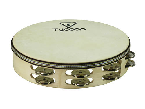 Tycoon Percussion Double Row Headed Wooden Tambourine Bright Steel Jingles