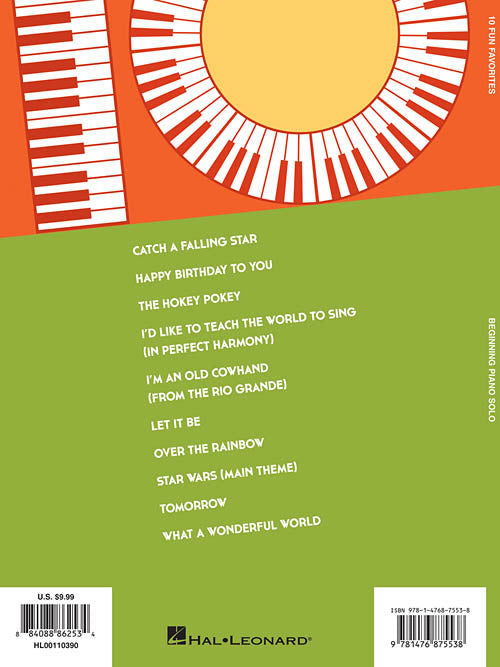 Fun and easy arrangements of 10 favorite tunes: Catch a Falling Star · Happy Birthday to You · The Hokey Pokey · I'd Like to Teach the World to Sing · I'm an Old Cowhand (From the Rio Grande) · Let It Be · Over the Rainbow · Star Wars (Main Theme) · Tomorrow · What a Wonderful World.