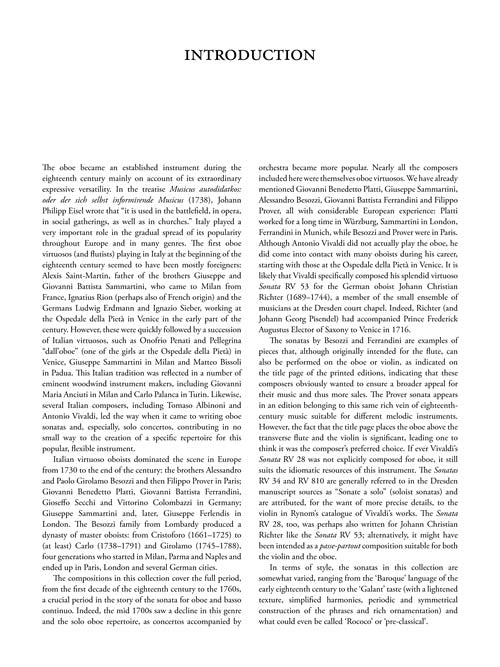 This series of eighteenth century Italian music includes compositions of special historical and musical significance. Each edition is based on the original sources to offer performers works that satisfy clear critical and musicological criteria. This anthology includes ten sonatas carefully selected from among those written by six of the most important eighteenth-century Italian composers of oboe music. Intermediate Level. Contents: Alessandro Besozzi, Sonata V Giovanni Battista Ferrandini, Sonata op. II no. 2 Giovanni Bendetto Platti, Sonata a oboe solo Giovanni Bendetto Platti, Sonata a oboe solo Filippo Prover, Sonata op. I, no. 4 Filippo Prover, Sonata op. I, no. 6 Giuseppe Sammartini, Sonata a oboe solo Giuseppe Sammartini, Sonata a oboe solo Antonio Vivaldi, Sonata per oboe solo RV 53 Antonio Vivaldi, Sonata a solo RV 28