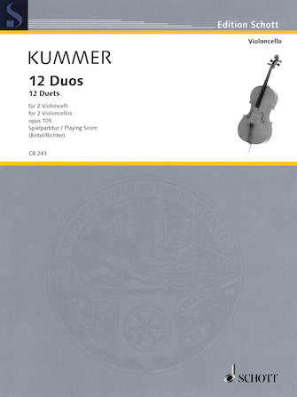 Friedrich August Kummer (1797-1879) came from a family of musicians, studied violoncello with the renowned solo cellist Friedrich Dotzauer of the Dresden Court Chapel and then worked as a cellist first at the Royal Opera House, later at the Dresden Court Chapel. Kummer composed of course for 'his' instrument as well, writing not only a cello method, but also a large number of performance pieces. To prevent any trouble with difficult works, his works also include numerous studies and easy pieces such as '12 Duets for 2 Violoncellos' Op. 105. They are one-movement pieces which demand cantabile and concertante playing at a moderate level of difficulty and are the ideal introduction to chamber music playing.