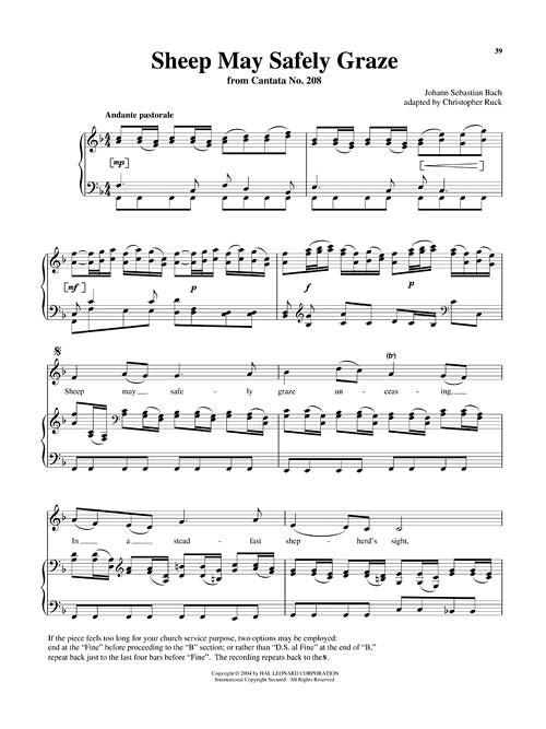 This useful, inventive collection of sacred solos is a valuable resource for classical singers looking for church service material, or the songs are also appropriate for a traditional recital. The collection includes art-song type settings of traditional songs, plus more conventional classical material. Contents: Ah, Holy Jesus, Amazing Grace, Ave Maria, Balm in Gilead, Brother James' Air, The Call, Deep River, How Can I Keep from Singing, Jesu Joy of Man's Desiring, Just a Closer Walk with Thee, Sheep May Safely Graze, Wayfaring Stranger, Wondrous Love, We Are Climbing Jacob's Ladder. Accompaniment audio is accessed online using the unique code inside the book and can be streamed or downloaded. The audio files include PLAYBACK+, a multi-functional audio player that allows you to slow down audio without changing pitch, set loop points, change keys, and pan left or right.