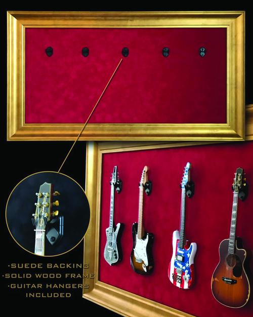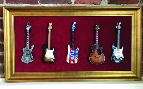 33 X 18 Mini Guitar Display Frame Red Suede Gold Frame Hols 3 Models