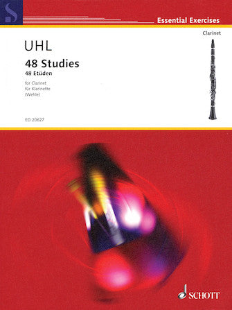 Alfred Uhl (1909-1992) was an Austrian composer of film music, orchestral works, and chamber music. 48 Studies (1938) includes exercises on legato, staccato, tonguing stamina, register change, tonal evenness, wide intervals, dynamics, differentiation in articulation, and more.