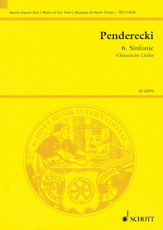 The history of the symphony is full of curiosities, ranging from works that are extremely long or scored for extensive instrumental forces to those of dubious authorship. There are also famous symphonies labelled as No. 0, works with alternate or multiple opus numbers, and a wealth of 'unfinished' symphonies. Krzysztof Pendereckis 6. Sinfonie can also be included in this category, since his Seventh and Eighth were completed decades ago. This work is comprised of eight songs on Chinese texts connected by solo intermezzos played on the Chinese stringed instrument,erhu. As in his two preceding works, the focus here is on vowels. This work, however, is scored for smaller orchestral forces and possesses a more intimate chamber music character, at times with greater melancholy than before. Penderecki has declared this symphony to be his farewell from the genre, although we know from experience that anything is possible with symphonies.