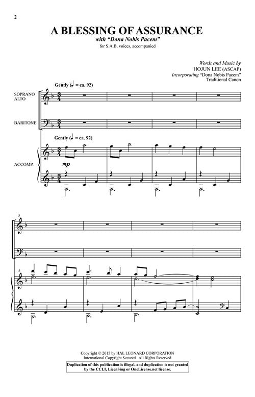 Uses: General, Benediction, Peace Sunday Scripture: II Corinthians 3:11; Galatians 5:22; I Thessalonians 5:23 This beautiful octavo wraps its arms of promise around the congregation in a petition of peace and hope. The gorgeous melody rises like a prayer and is answered with a countermelody in a beautiful duet. Based on Scripture and incorporating the traditional round tune Dona Nobis Pacem, this is a quintessential closer for a worship service.