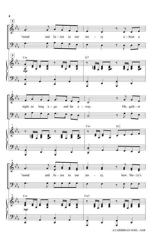 Uses: Christmas, Epiphany, Holiday Concert, Youth Scripture: Luke 2:8-9; Isaiah 7:14 Not every Christmas anthem paints a landscape of snow and evergreens. Performing this festive new holiday offering based on a Puerto Rican folk song will fill the sanctuary with warmth and joy. Add the optional percussion for an authentic taste of this engaging folk idiom. Something really special for the holidays!