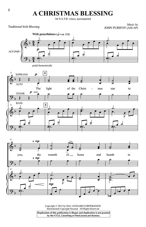 Uses: Christmas Eve, Christmas, Benediction, Concert Scripture: Romans 15:13; Galatians 3:14 A peaceful moment of benediction at the conclusion of a Christmas service is part of many worship traditions. This ancient Irish blessing is filled with touching imagery of stars, hearth and angels, all wrapped up in beautiful music. Don't miss this elegant choral blessing! Duration: ca. 2:31.