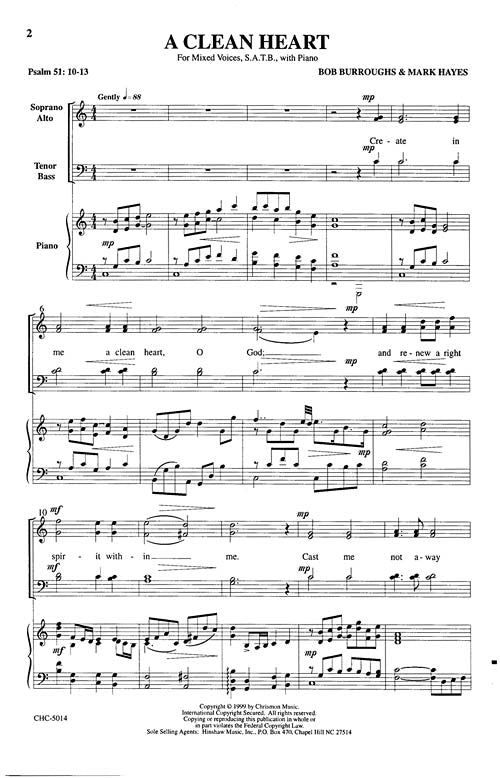 Psalm 51 This piece is a musical collaboration by Bob Burroughs and Mark Hayes. It is of medium difficulty-SATB with piano accompaniment. This would be classified as a traditional anthem, with a few less traditional harmonies; it would make a good a capella warm up.