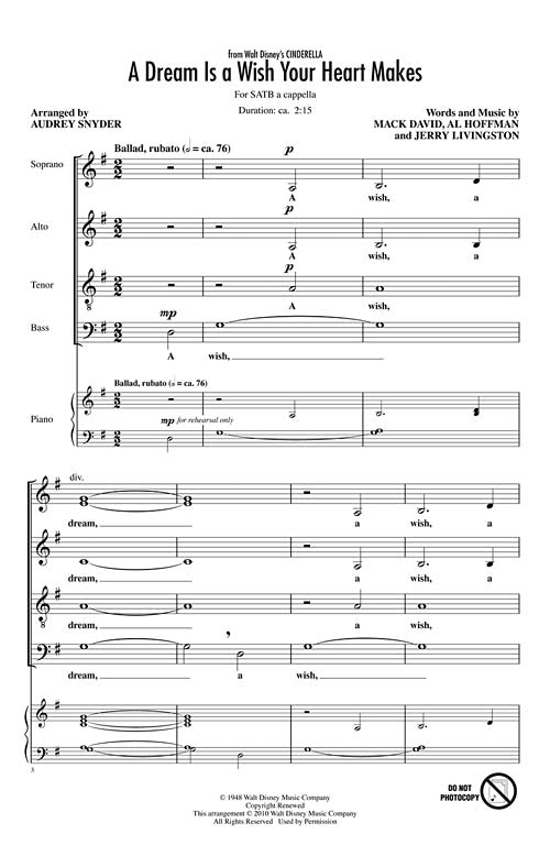 A Dream Is a Wish Your Heart Makes (from Disney's Cinderella) SATB a cappella
