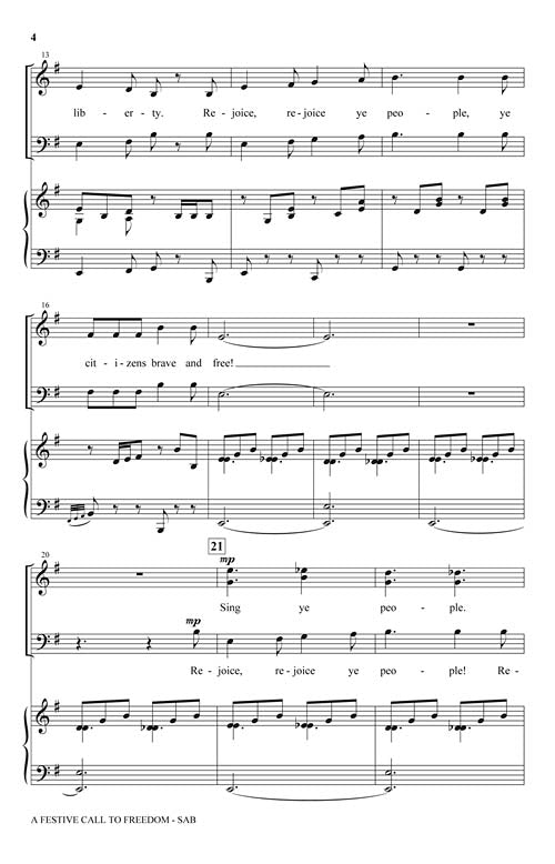 A vigorous Shaker tune takes on fresh purpose when joined with this original patriotic text. A powerful choral that celebrates the gift of freedom and good citizenship! Available separately: SATB, SAB, 2-Part, Orchestration, StudioTrax CD. Duration: ca. 2:20.