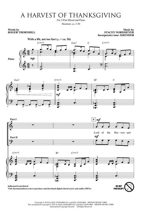 Now available as a one rehearsal wonder in a 2-Part Mixed setting! The spirit of gratitude shines in this paean of praise. Approachable in scope and arranged for success, this is an ideal opener for a harvest service. The music lilts with a message proclaiming that we are abundantly blessed and a quote from the celebrated We Gather Together adds warmth and appeal to the concept. Creative modal alterations in the harmonic selection give this piece an ancient/modern feel that is welcome in many styles of worship. NOTE: Score and Parts work only with the SATB voicing.