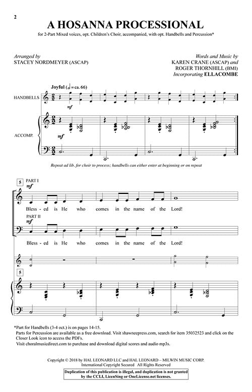 Artistry and utility meet in this practical piece for Palm Sunday! Arranged for success, the anthem's creative yet simple approach shows thoughtful consideration for the processional purpose of the piece. Handbells and percussion join with the hosannas, adding a festive touch to this rousing affirmation of Christ, the King of kings. Essential worship repertoire!