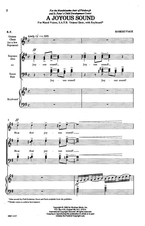 A wonderful original work by Robert Page Simple with beautiful harmonies for mixed choir and unison choir (or few sopranos).