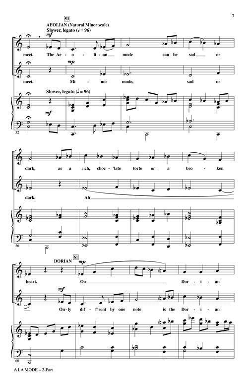 Music theory was never so much fun! Comparing the modes to ice cream flavors and demonstrating each mode one by one, your students will learn and have fun in the process! Clever lyrics and cool harmonies serve up each special aural treat a la mode. Available separately: SATB, SAB, 2-Part. Duration: ca. 3:15.