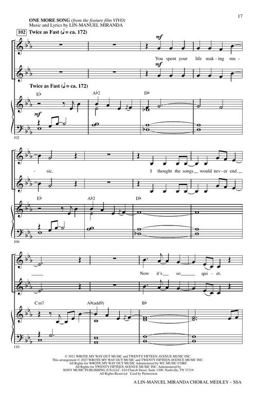 Lin-Manuel Miranda has slowly and surely become a musical theater icon of the modern era. Like Schwartz, Sondheim, Loesser and Rodgers & Hammerstein, Miranda writes songs that are transcendent, singable, joyous, and worth the price of admission. This medley from show choir veteran Mark Brymer includes some of the most memorable highlights from an illustrious career: In the Heights, How Far I'll Go (from Moana), One More Song (from Vivo), We Don't Talk about Bruno (from Encanto) and My Shot (from Hamilton).