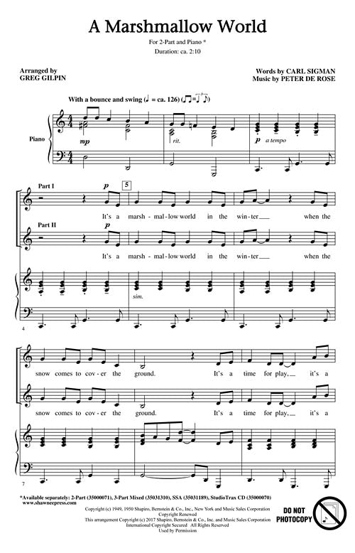 This bouncy number has been a popular selection and now has been released in new separate 2-part and 3-part voicings and a brand new SSA voicing as well! Set the holiday mood with these adorable lyrics and swingin' style.