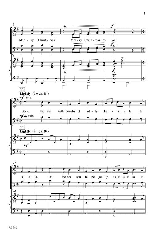 This is a joyful, easy-to-prepare medley of six favorite and familiar holiday songs - Deck the Hall; Go Tell It on the Mountain; Angels We Have Heard on High; The First Noel; The Holly and the Ivy; Joy to the World. Greg Gilpin has created a medley with lots of dynamics and musical diversity, crafting it so that it is seamless and smart. Beginning and ending with an original vocal fanfare, this medley will fill that special place in your holiday program. Available separately: SATB, SAB, 2-part, StudioTrax CD.