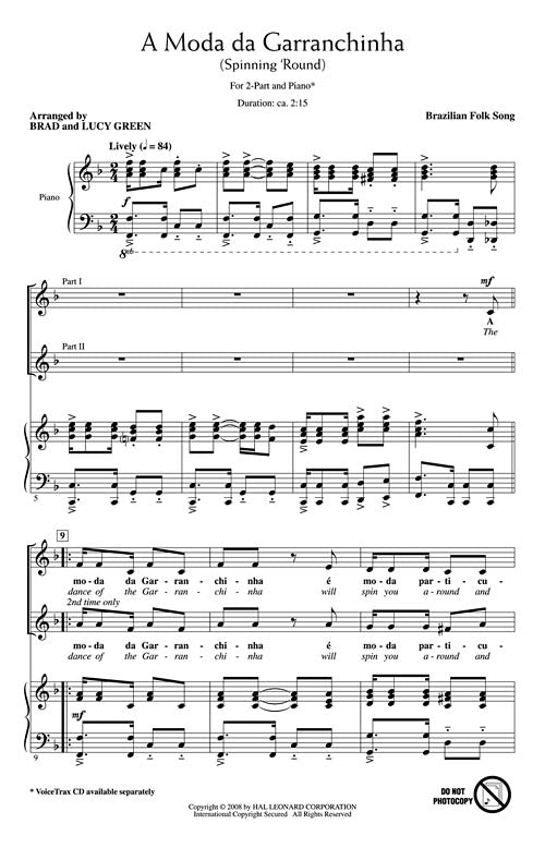 Your heart will be captured by the loveliest girl as she spins 'round and 'round. This colorful Brazilian folk tune comes from a rhythmic folk dance. A wonderful multicultural selection for young treble choirs! In Portuguese and English. Available separately: 2-Part, VoiceTrax CD. Duration: ca. 2:15.