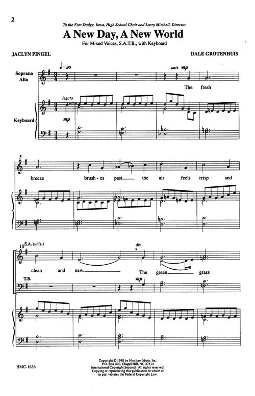High quality literature for the school choir, junior or senior high. The text is provided by a student of the composer. Difficulty Level: Medium Middle School, High School or Easy Adult. Duration - 00:03:01.