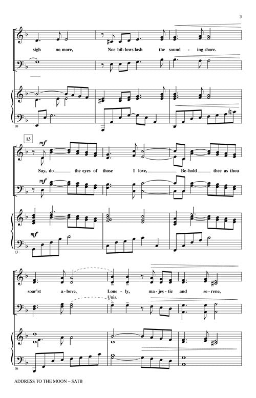 The delicate nuance of the Chopin-esque accompaniment provides the perfect support to the expressive melodic phrases in this lovely work with text by the American poet Nathaniel Hawthorne. Available separately: SATB, SAB, SSA. Duration: ca. 3:00.