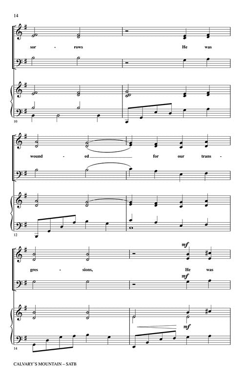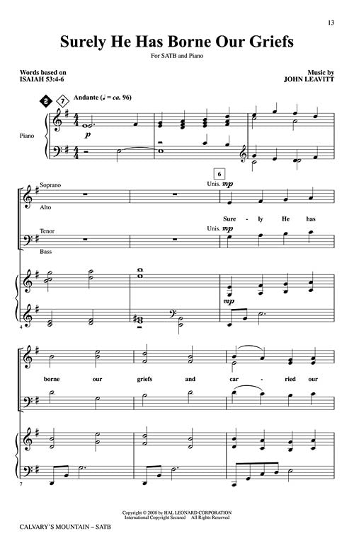 John Leavitt has created a cantata designed for Lent and Holy Week. Titles include: What Wondrous Love Is This, Were You There, Surely He Has Borne Our Griefs, Alas! And Did My Savior Bleed and Jesus Died on Calvary's Mountain. Available separately: SATB, ChoirTrax CD, Chamnber Orchestra score and parts (fl 1/2, ob, cl 1/2, bn, perc 1 and 2, hp, str:88442), Preview CD, Preview Pak. Duration: ca. 30:00.