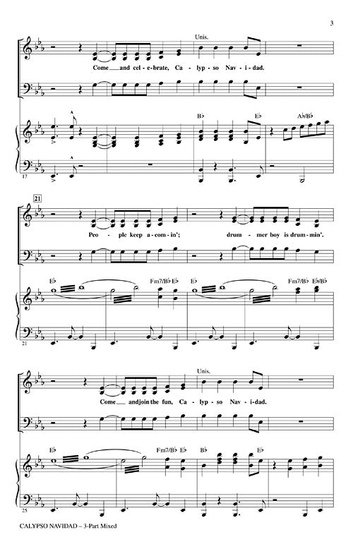 Enjoy your holiday Latin style with this cheerful original that's easily learned and fun to perform. A perfect addition to December concerts! Performance Time: Approx. 2:35.Available separately: 3-Part Mixed, 2-Part and ShowTrax CD.