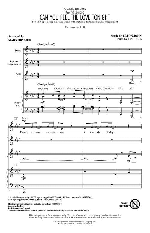 This iconic love song by Elton John from The Lion King was given a fresh look by the sensational pop group Pentatonix. Here, their arrangement is captured giving your vocal jazz/a cappella choir the chance to really shine.