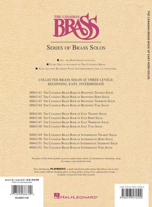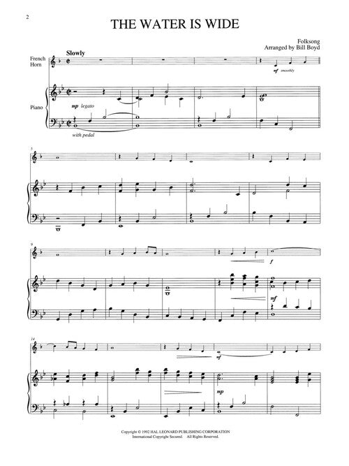 Horn part edited and recorded by Canadian Brass member David Ohanian, piano parts edited and recorded by Patrick Hansen. Arrangements by Bill Boyd. Companion audio includes full performances and accompaniments. Contents: Ah How Pleasant 'tis to Love · Danny Boy (Londonderry Air) · He Is an Englishman · Italian Song · Jesu, Joy of Man's Desiring · Lament (Lascia Chi'io) · Meet Me in St. Louis, Louis · O Canada! · Of Strange Lands and People · Shenandoah · The Water is Wide · Wondrous Love. Audio is accessed online using the unique code inside the book and can be streamed or downloaded. The audio files include PLAYBACK+, a multi-functional audio player that allows you to slow down audio without changing pitch, set loop points, change keys, and pan left or right.