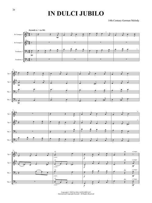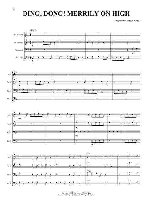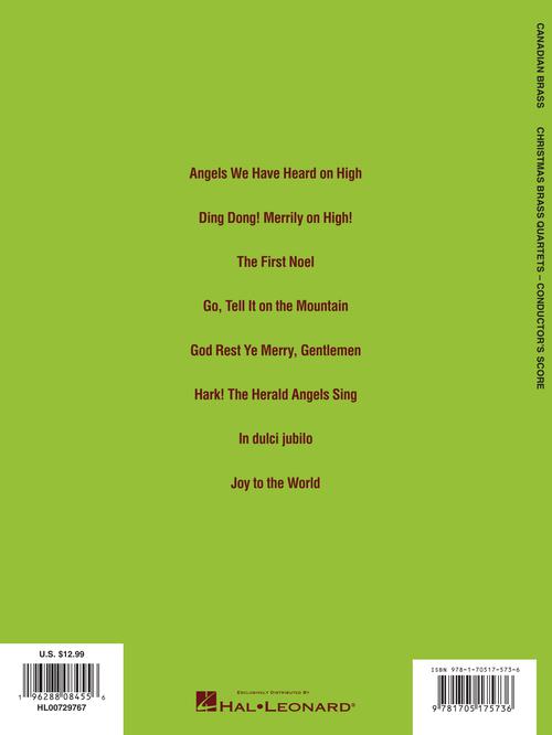 This collection features eight arrangements in that distinctive Canadian Brass style for two B-flat trumpets and two trombones. Contents include: Angels We Have Heard on High · Ding Dong! Merrily on High · The First Noel · Go, Tell it on the Mountain · God Rest Ye Merry, Gentlemen · Hark! The Herald Angels Sing · In dulce jubilo · Joy to the World.