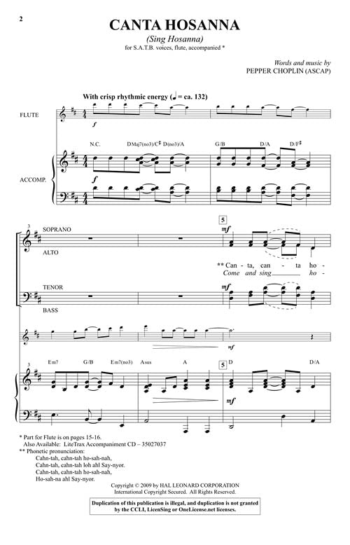 Uses: Palm Sunday, multicultural, concert Scripture: Luke 19:29-40; Matthew 21:1-11 Ever the innovator, Pepper Choplin visits the Palm Sunday event with his wonderful theatrical approach. This time he uses Spanish words to invigorate the sound and the appeal is instantaneous. The accompaniment track is an outstanding option for this unique new choral. Contains opt. flute part. Available separately: SATB, LiteTrax CD. Duration: ca. 2:21.