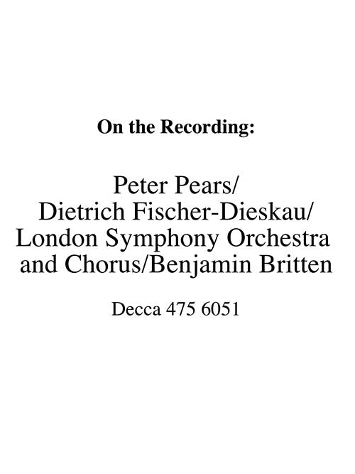 for tenor and baritone solos, small chorus and string quartet, string orchestra, piano, harp and timpani. Text: In Latin by Patrick Wilkinson Publisher: Boosey & Hawkes Difficulty level: 4 (chorus parts) This work is a different as chalk from cheese from the Cantata academica. Here is a searingly beautiful work which presses all Britten's sympathetic buttons. It was composed for the centenary of the Red Cross and first performed in Geneva on 1 September 1963 conducted by Ernest Ansermet. Britten worked with his librettist, Patrick Wilkinson, to create a dramatic scena around the parable of the Good Samaritan. How appropriate this was for the organisation whose work it was intended to celebrate. Wilkinson set it in Latin, giving the Cantata a timeless sense of the universality of the message the parable conveys. Britten's scoring further emphasises the intimacy of the work which has echoes of Saint Nicolas and the Ceremony of Carols in its use of the harp and piano. The separate string quartet, however, is the truly personal touch giving that powerful sense of looking in on a private conversation. The quartet begins the work with a contrapuntal figure which returns at key moments as a refrain or as a joining passage marking the arrival of a new potential source of help to the wounded man, and again at the end. This is a work which barely raises its voice. The emphasis is on compassion and not on the violence done to the traveller who was so badly injured and so callously ignored by the priest and the Levite who passed by. This Cantata immediately followed the composition of the War Requiem, and Owen's pity and waste of war is at the heart of this new work which could have painted a very different picture of righteous indignation or the fighting which would leave the traveller broken by the wayside. The end of the work also has strong resonance with the War Requiem when the Samaritan has taken the traveller to recover in a local inn and says: 'sleep now, my friend, sleep: forget your injuries.' Britten has achieved a remarkable effect in this work. It leaves an indelible impression on its listeners and, like all stories designed to demonstrate a moral, sends one away intent on being a better person. The choral parts of the Cantata misericordium are quite challenging, though not in the league of Sacred and Profane or A Boy was Born. What is essential in performing this work, however, is that the choral parts should be so well sung that the gentle nature of the whole work is not disturbed by obviously problematic passages for choir. The whole concentration should be on the message, as Britten intended. It is the moral of the tale and not its means of communication which is paramount. Duration: 20 minutes Paul Spicer, Lichfield, 2011