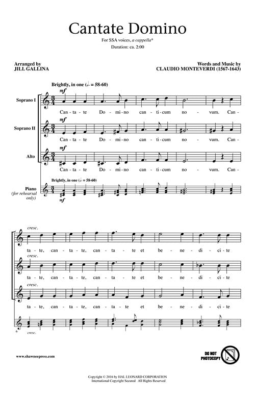 One of a number of short motets written by Italian composer, Claudio Monteverdi, this madrigal style for six voices has been set for SSA, carefully weaving selected vocal lines from the original to create this stylistically authentic edition using both energized and legato singing.