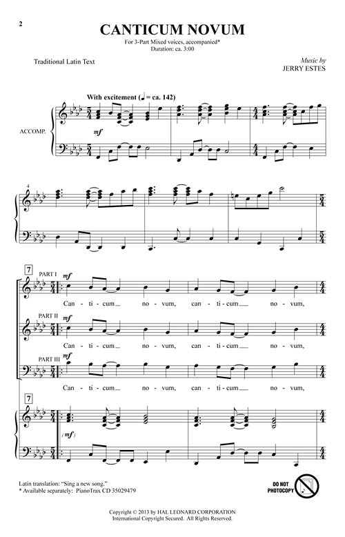 Alive with energy created from its up-tempo and multi-metered style, the easy Latin text is used with English text to celebrate music and the joy of singing. With a supportive and rhythmic piano accompaniment, this is excellent for contest, concert and festival use.