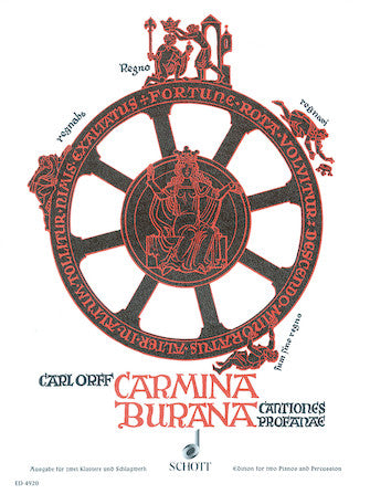 Edition for voices, two pianos and percussion. Carmina Burana, first performed in 1937, is based on an important collection of thirteenth-century poems found in the monastery of Benediktbeuren. Carl Orff made selections from this collection and in robust and delicate musical colors painted a manifold picture of life. Everything I have written up to now, and which you have unfortunately printed, you can shred into pulp. My collected works begin with 'Carmina Burana'. Carl Orff wrote to his publisher after the premiere. And so it was that his work caused a sensation in the whole world and continues to delight people of all cultures. Two copies needed for pianists.